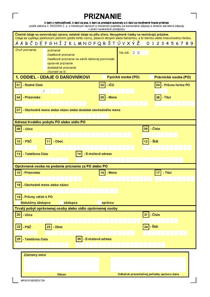 Mestský úrad dáva na vedomie obyvateľom, ktorí v roku 2025 nadobudli nehnuteľnosť kúpou, zdedením alebo predali nehnuteľnosť a to rodinný dom, pozemok, garáž, chatu alebo iné stavby, alebo dostali stavebné povolenie, skolaudovali budovy, prípadne vzali pozemky do vlastného užívania, že sú povinní podať priznanie dane na nehnuteľnosť najneskôr do 31. januára 2026 na tunajšom mestskom úrade.